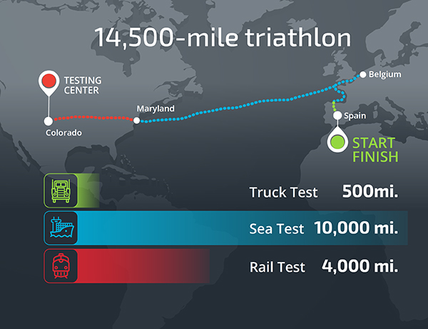 The triathlon is actually Sandia’s fourth test to measure routine transportation strains.