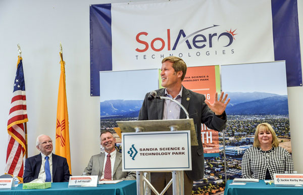 Sandia Director Steve Younger joined Albuquerque Mayor Tim Keller at SolAero Technologies Corp. to release findings of a new report by the Mid-Region Council of Governments.