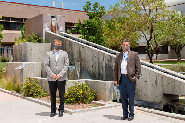 WOLLERMAN WELCOME — Kansas City National Security Campus President Eric Wollerman, left, met with Labs Director James S. Peery during his visit to Sandia on July 17. During the visit, Wollerman, who became president of KCNSC in April, met with Sandia leadership and received an introduction to technologies related to the Labs’ nuclear weapon work with KCNSC. The visit included briefings and tours of some of Sandia’s facilities.