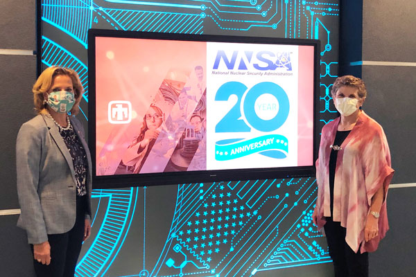 HIGH PRAISE — NNSA Administrator and DOE Under Secretary for Nuclear Security Lisa E. Gordon-Hagerty, left, met with Deputy Labs Director Dori Ellis during a visit to Sandia’s California campus on Sept. 30. Gordon-Hagerty commended Sandia for accomplishments in recent months, including work on the Labs’ nuclear security mission and response to the COVID-19 pandemic. (Photo by Florencia Prada)