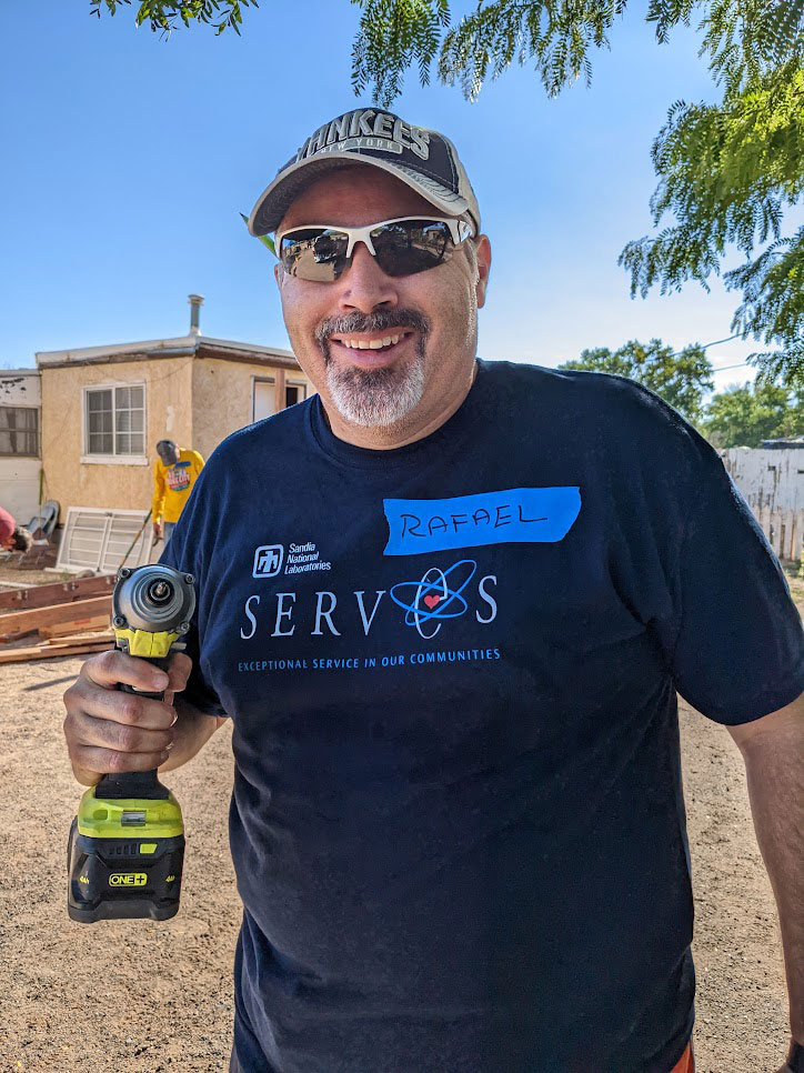 A HELPING DRILL — Facilities Management and Engineering Director Rafael Gonzales and other Sandia volunteers working with Rebuilding Together Sandoval County helped build ramps and platforms for a home in Bernalillo. (Photo courtesy of Rebuilding Together Sandoval County)