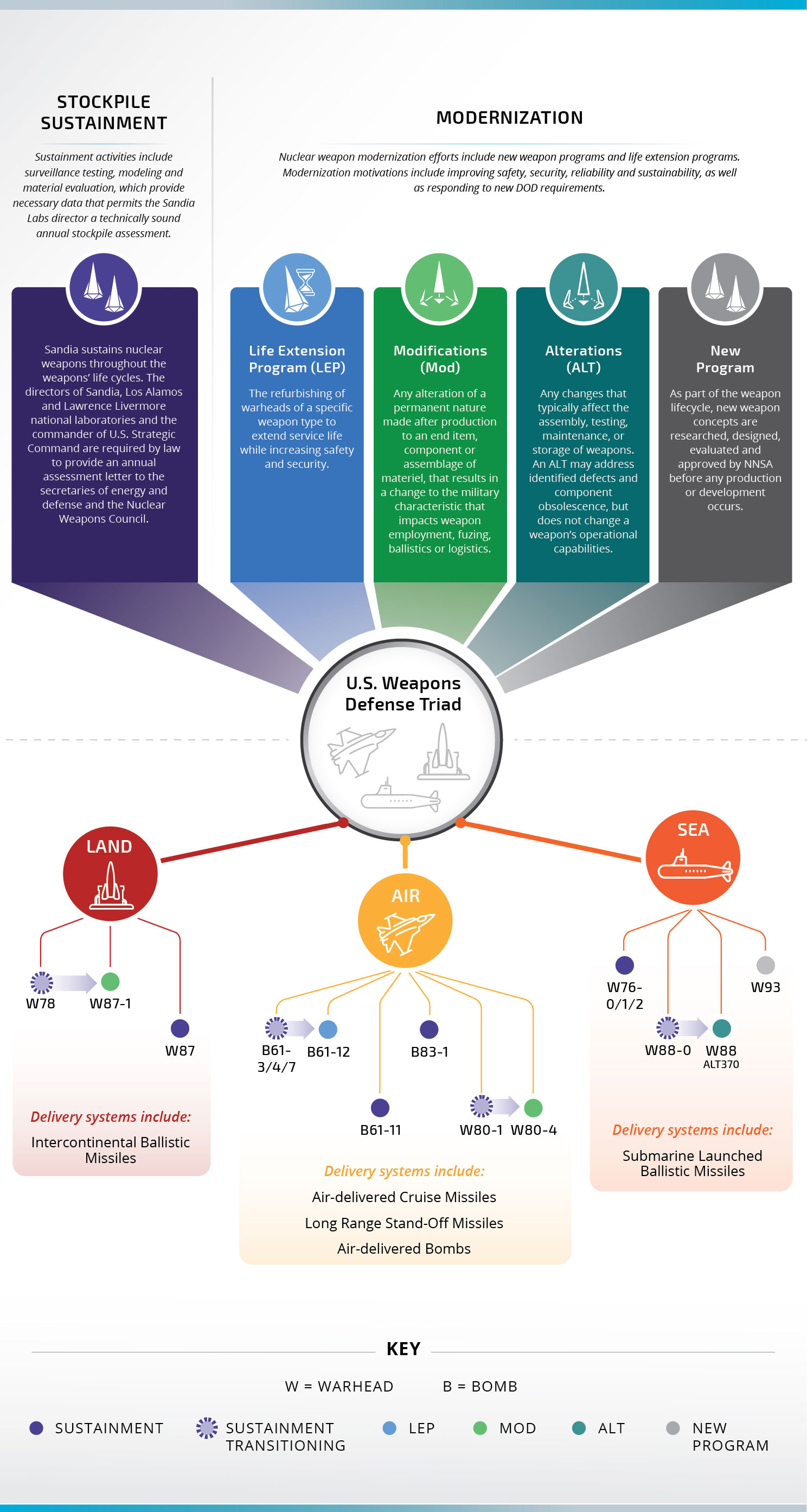 Lab News worked with the nuclear deterrence program to illustrate the U.S. Weapons Defense Triad, from stockpile sustainment to modernization. For more information about how to contribute expertise to the nuclear deterrence programs, visit the Nuclear Deterrence Modernization Efforts Rally Cry website.