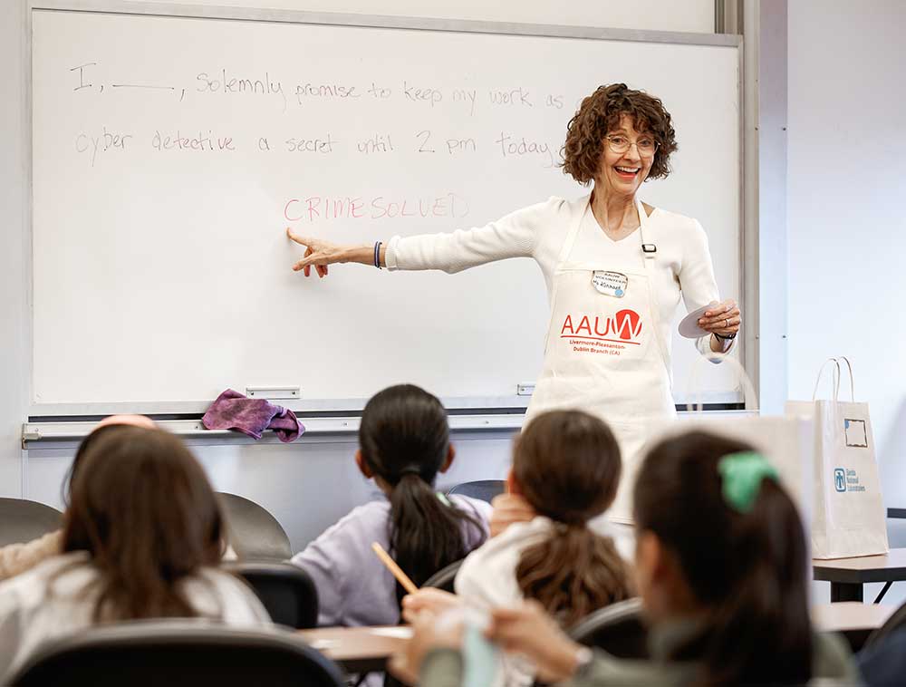 The 41 young scholars and their volunteer chaperones entered state-of-the-art college classrooms and science labs and were met by a team of STEM professionals from Sandia and the Tri-Valley branch of the American Association of University Women, who would spend the next five hours inspiring them with STEM Day for Girls activities.