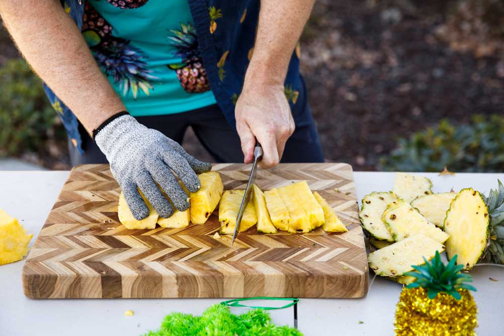 Leading up to the event, he scouted local supermarkets for the perfect pineapple that met the weight requirements and, as only a pineapple cutting expert would know, was the ideal firmness. He found the best ones at his local fruit markets and Whole Foods.