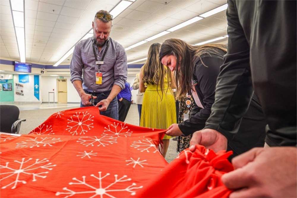 “I love the no-sew blanket project for its versatility,” Community Involvement Specialist Katrina Wagner said. “Whether you’re crafting a blanket at home alone, with friends and family, or as a team at work, it brings people together for a meaningful cause. Nonprofits that serve both people and animals in our community cherish these blankets, as they provide comfort and warmth to those facing difficult times.”