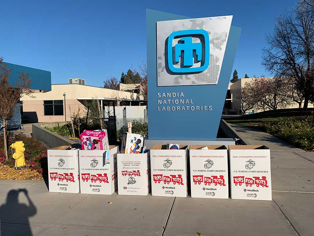 WISHLISTS FULFILLED — Toy donations are collected from drop boxes across Sandia California and New Mexico sites on Dec. 9, for the annual Marine Corps Reserve Toys for Tots campaign. This year, 261 toys were collected. Sandia has participated in this initiative since 2009, providing toys to local families in need. (Photo by Jamie Duranleau)