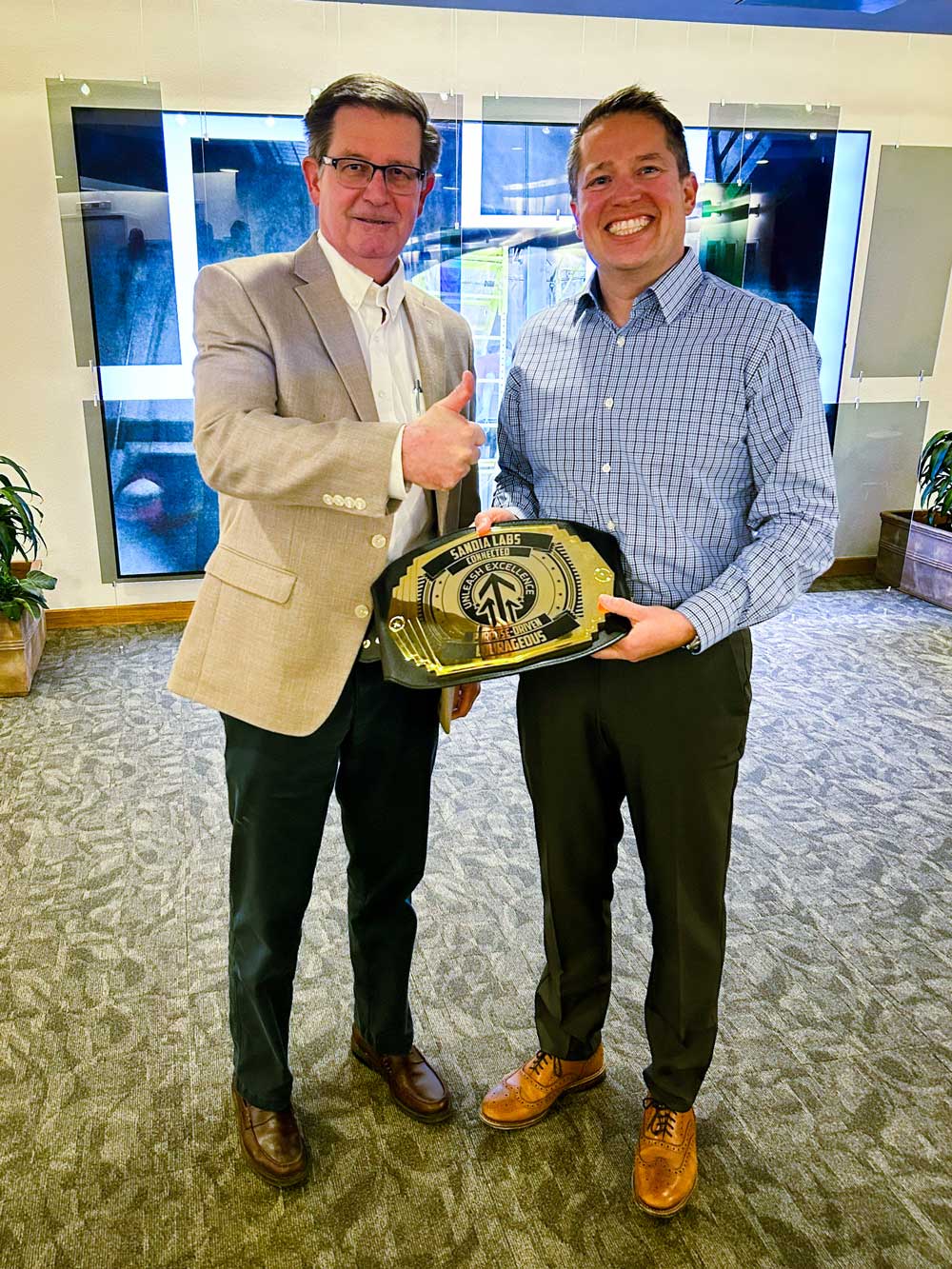 The supply chain team was recognized for making improvements with an Unleash Excellence WWE-style championship belt, a traveling trophy bestowed by Labs Director James Peery.