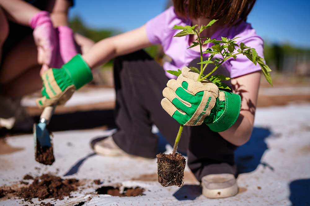 FARM FRESH — Jacqueline Beherec, 6, prepares a hole for a tomato plant in Corrales during the Seed2Need event. Once harvested, Seed2Need will distribute the tomatoes to feed hungry people in New Mexico. (Photo by Craig Fritz)