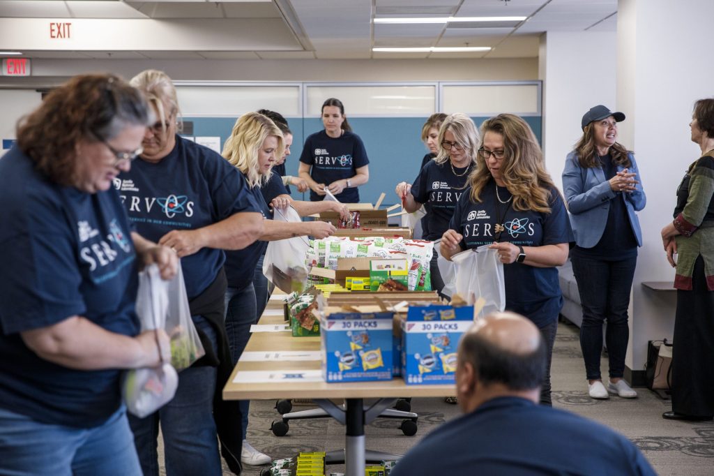 Sandia’s Community Involvement team recognized Affordable Housing Awareness Month by hosting a volunteer event for California staff on May 1. California nonprofits United Way Bay Area and Open Heart Kitchen shared presentations about homelessness and affordable housing with 28 Sandia volunteers. Following the presentations, the volunteers created 400 snack kits for homeless community members who rely on Open Heart Kitchen for a safe place to sleep.