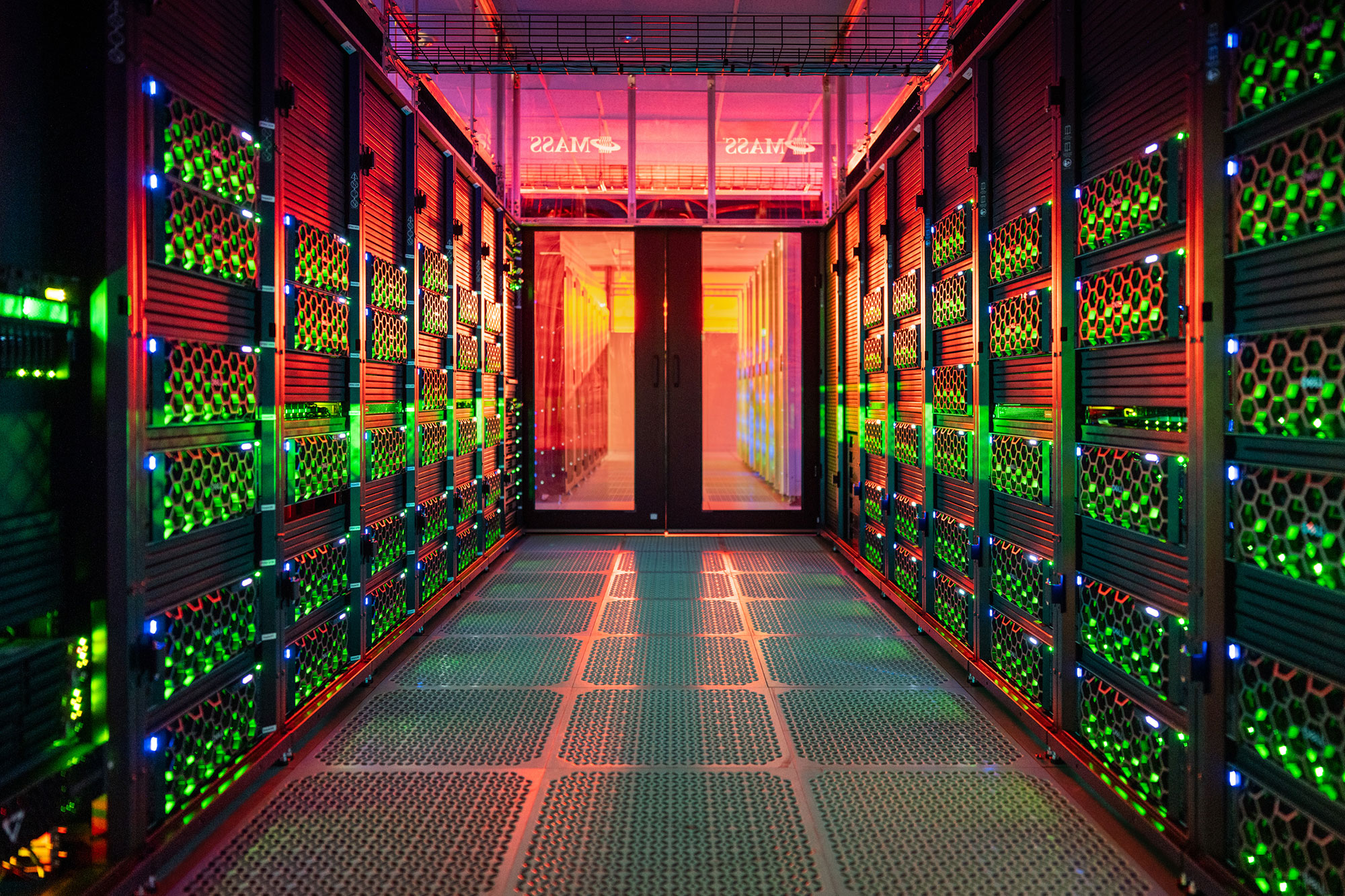 ONE JOB ON THREE SYSTEMS — Sandia's, Los Alamos' and Lawrence Livermore’s data are kept in three different places. A training run builds one model using those three different systems. Hops, pictured above, is one of the Sandia systems in the project. (Photo by Craig Fritz)