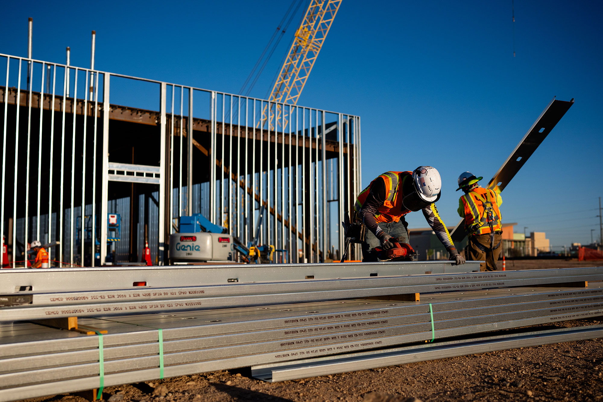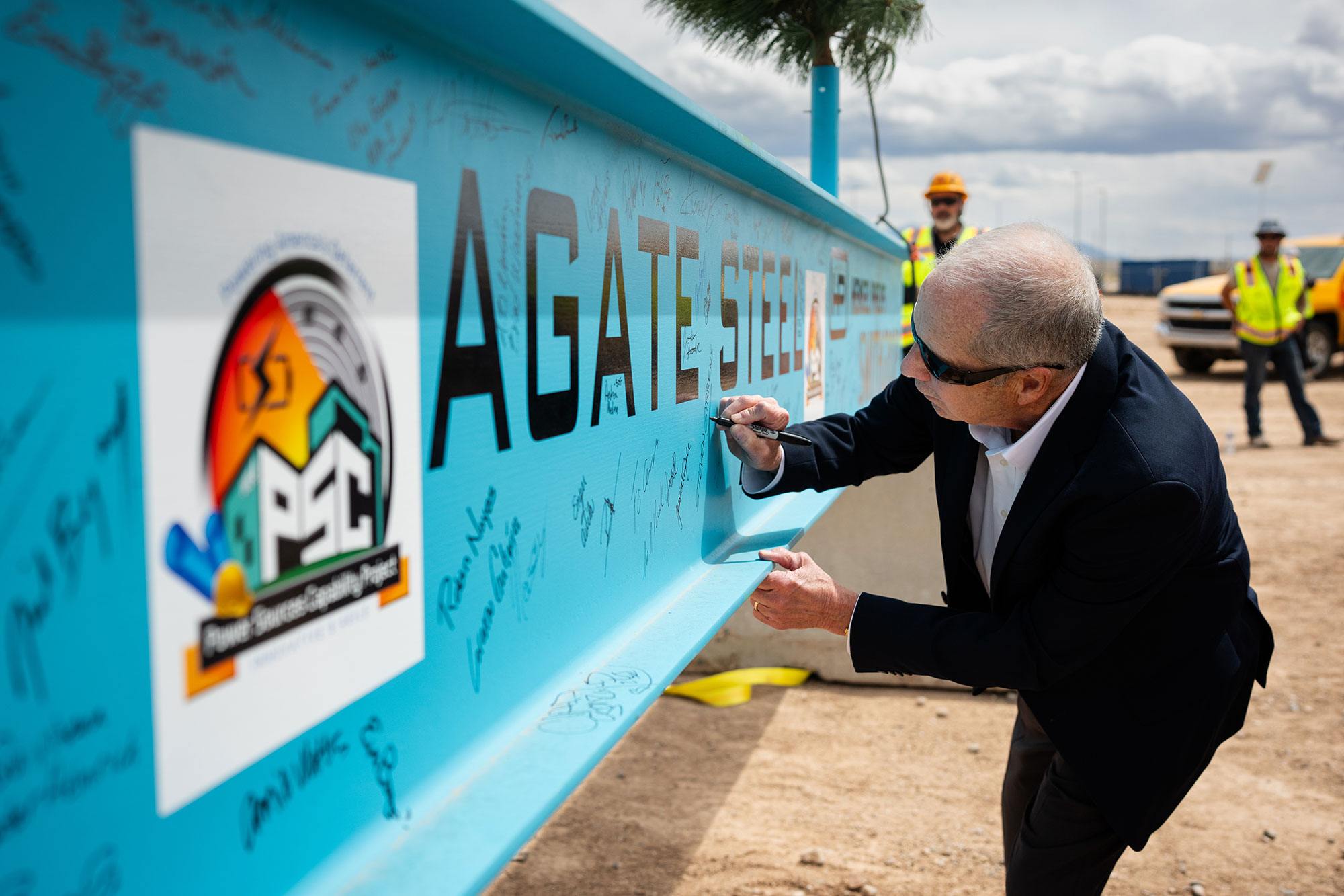 Workers marked a major milestone on one of Sandia’s largest construction projects of the past decade with an April 14 ceremony celebrating the installation of the final beam on the Power Sources Capability building.