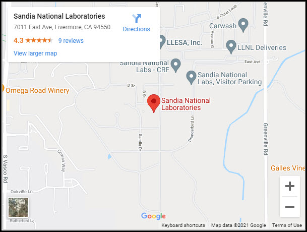 For best results in your mapping app, enter “1 Thunderbird Lane, Livermore, CA” as the address for Sandia California.