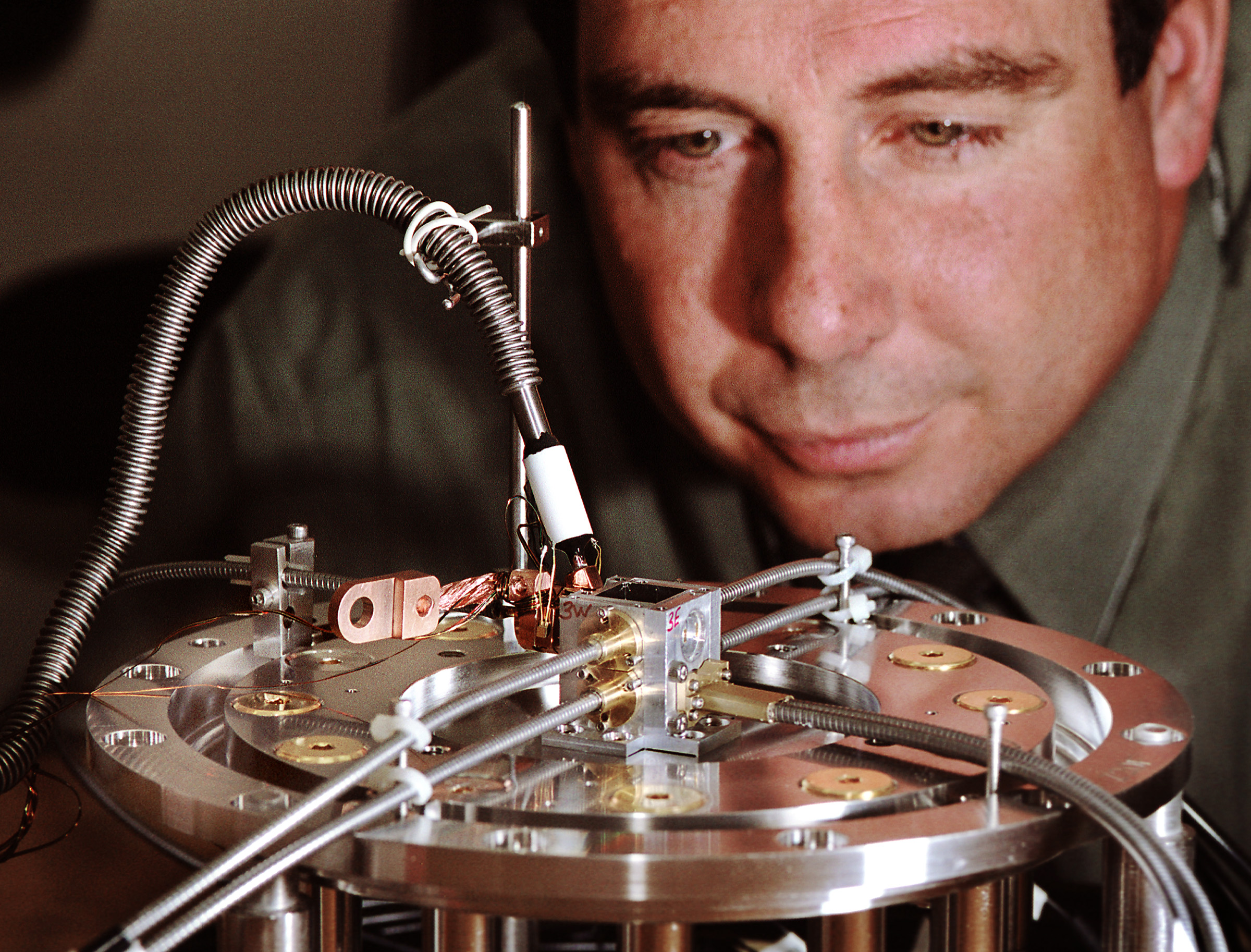 MY BABY With tender care, Sandia researcher Clint Hall examines one of his group's ICE experiments that created a material response curve for lithium fluoride.