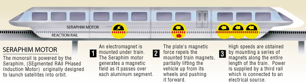 on an essentially silent, magnetically powered, monorail
