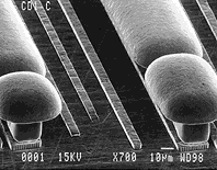 Finding affordable heat removal a major challenge "Heat buildup is becoming one of the major limitations to creating tomorrow's more compact, complex micro devices," he says. Traditionally microchip substrates are made of fiberglass-epoxy-type materials laden with copper interconnects that help conduct heat into the substrate and away from the microchip. Other designs include supplementary heat spreaders of solid copper or other conductive materials within the substrate. In the recent past, highly conductive diamond and diamond-coated substrates have been developed, but their use is drastically limited by their high cost. And as chips get hotter, simple conduction in affordable materials won't do the job, David says. To solve the heat-buildup problem in specialty microelectronic devices and some laptop computers, microchip manufacturers have added small tubular heat pipes to the surfaces of microchips that help carry some heat away from the hottest circuitry and transfer it to other structural elements, such as a printed circuit board's external surfaces. But the surface connections where tubular heat pipes meet substrate typically conduct heat very poorly and therefore aren't effective heat removers. In the new Sandia substrate, the "micro heat pipes" built directly within the substrate material carry heat away from the chip much more efficiently than conduction through solid copper or transport through larger heat pipes on the substrate surface and thus allow for greater heat reduction and improved temperature control. "Sandia put the cooling right where the action is," Benson says. "The closer the coolant is to the circuit, the more heat can be managed."