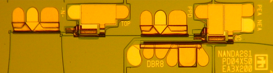 Sandia operates a robust InP Photonic Integrated Circuit capability in our MESA compound semiconductor fab. The InP PIC library contains more than 21 active and passive components, including tunable diode lasers, modulators, amplifiers, detectors, and interconnection optical waveguides on InP substrates for C-band operation. This capability rests on a foundation of state-of-the-art III-V semiconductor crystal growth using metalorganic chemical vapor deposition (MOCVD) and post-growth quantum-well band-gap modification using quantum-well intermixing (QWI) methods.