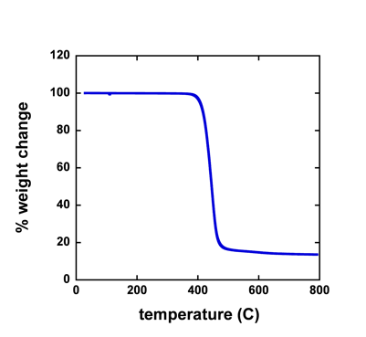 Measured with a TA Instruments Q5000 TGA at a ramp rate of 20C/min. DOWNLOAD DATA FILES Temp (C)% Weight Change