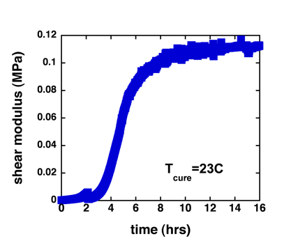 Increase in modulus measured with an ARES rheometer in parallel plate geometry at 23C. DOWNLOAD DATA FILES Time (hrs)G (MPa)
