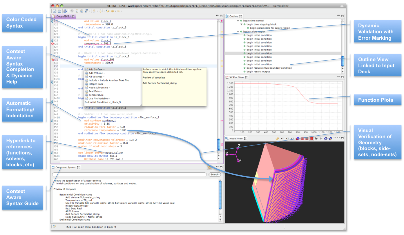 Sierra is Sandia’s engineering mechanics simulation code suite. It is part of the Advanced Simulation and Computing (ASC) program, and provides predictive simulation tools to support U.S. stockpile stewardship. The Sierra suite includes coupled simulation capabilities for thermal, fluid, aerodynamics, solid mechanics and structural dynamics. We use these simulation capabilities to predict the performance of a weapon system in normal operation as well as the response of a system in abnormal environments, such as a crash or fire.
