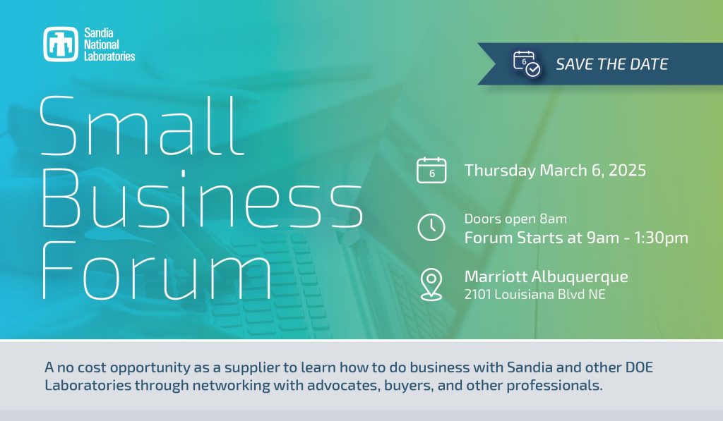Join us for the Annual Small Business Opportunities Fair at Sandia National Laboratories! This event offers a unique chance to connect, share insights, and participate in breakout sessions, an expo hall, and networking opportunities. Don’t miss out—register today to secure your spot!